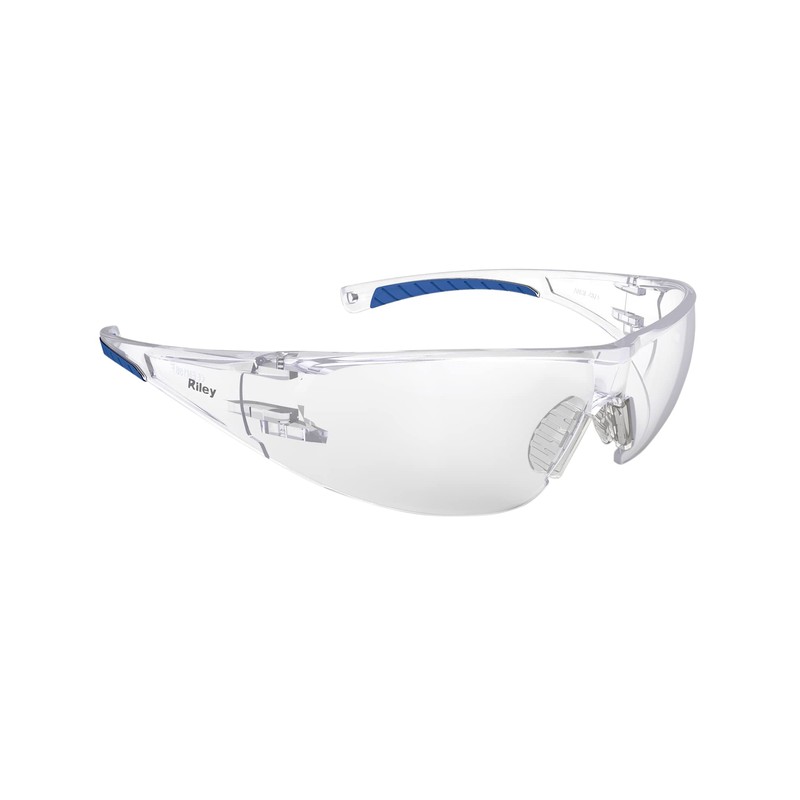 Riley Kosma Protective Safety Glasses for Work – Rubber Coated Lightweight and Adjustable Sport Style Clear Goggles