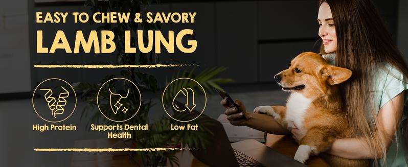 Our lamb lung treats are suitable for dogs of all sizes and chew aggression levels. They are packed with essential vitamins and minerals, contributing to your dog's overall health and well-being.
