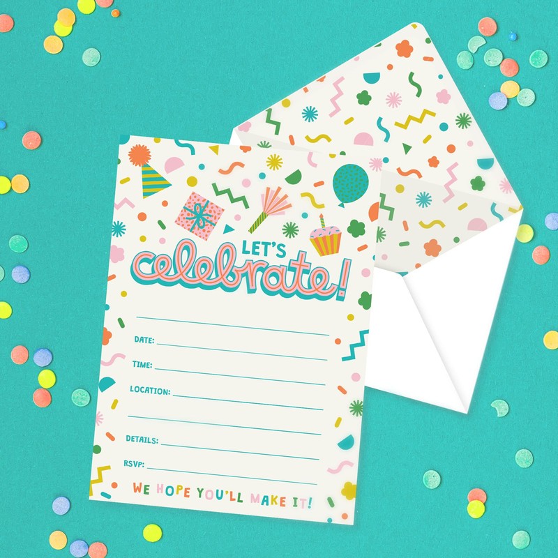 With their cute confetti and party hat print and the convenience of just having to fill in the details instead of writing an entire message, these cards are perfect when you're busy with other event-planning chores. The 50-count pack means you'll have plenty to send out to all your favorite people, and the high-quality card stock makes them sturdy and presentable. At 5x7 inches, they're the same size as standard invitation cards.