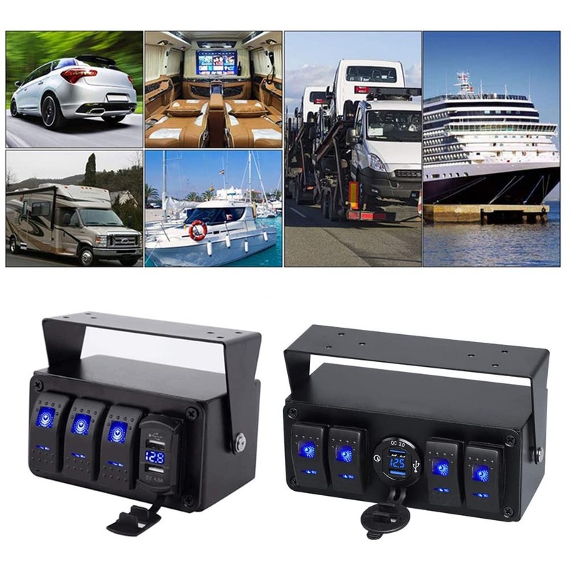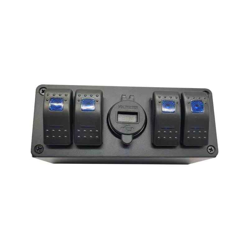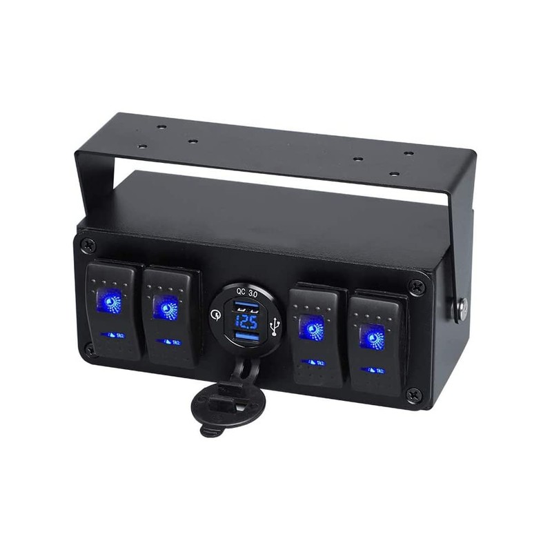 Riloer 4 Gang Rocker Switch Panel With 4.8 A Dual Usb Fast Charge/Fast Charge 3.0 Usb Voltmeter Charger For Marine Trucks 12V-24V, 4 Sets Of Control Panels