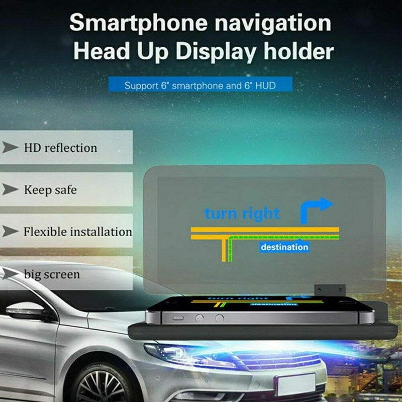 Riloer 6" Screen Universal Car HUD Head Up Display Projector Phone Navigation GPS Holder