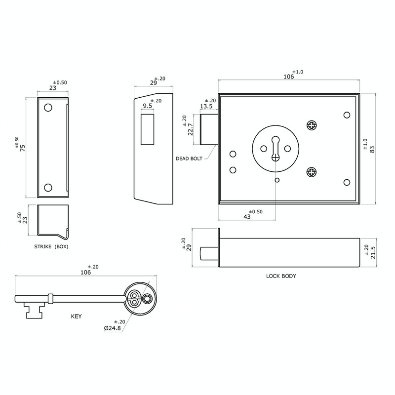 Rim Deadlock Surface Mounted Lock 106 x 83mm Black