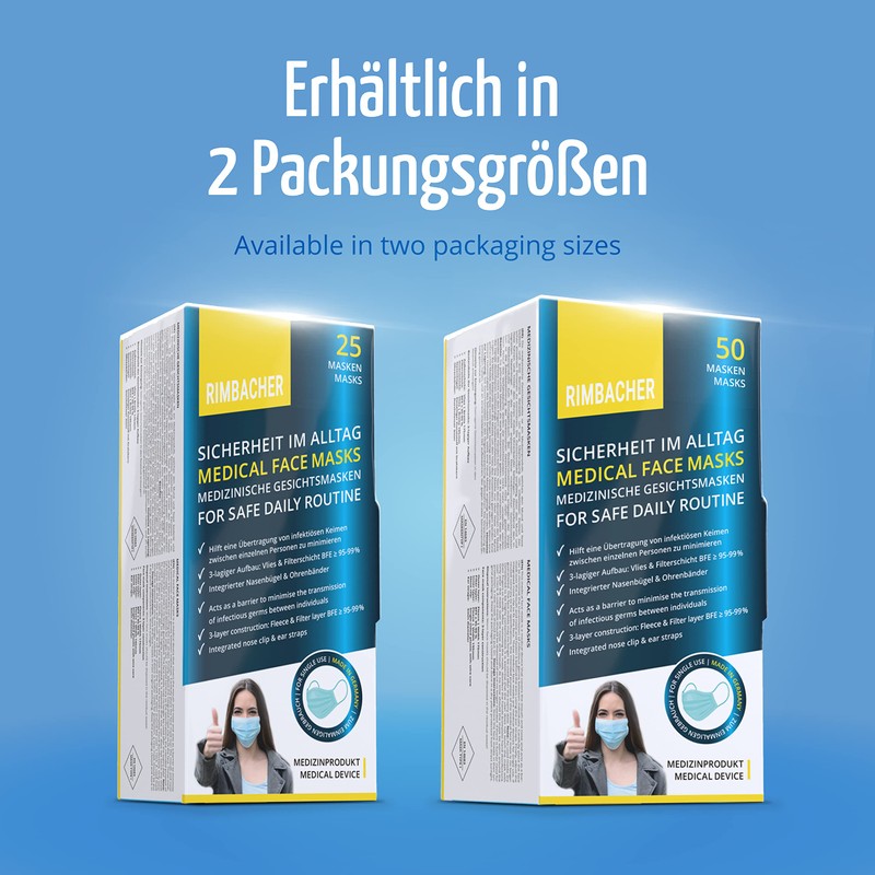 Show off the mask! In times like this, protecting the individual and others is more important than ever. Especially in medical institutions. Nothing happens without a mask. However: they must be safe and tested. That's why we rely on certificates. Test certificates. With all our products, tested safety is the priority – and we have that tested. We love to be safe. And: Yes, we also love it to be German. That's why we produce our masks in Thuringia. Rimbacher masks impress with: › high wearing comfort › very good filter performance with low breathing resistance › standards (classification according to EN 14683 (2019-10) and EN ISO 11737-1:2018) › especially soft and supple non-woven fabrics › our masks are tested by selected and specialised accredited test lab.