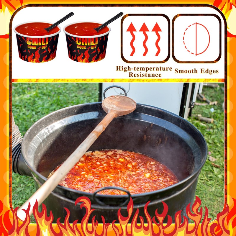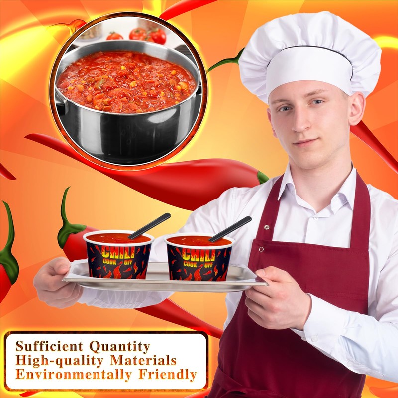 RimCereal 200 Pcs 5 oz Chili Cook Off Party Decorations Include 100 Pcs 5 oz Disposable Sample Chili Cook Off Tasting Paper Cups 100 Pcs Plastic Spoon for Chili Cook Off Party Supplies(Flame Chili)