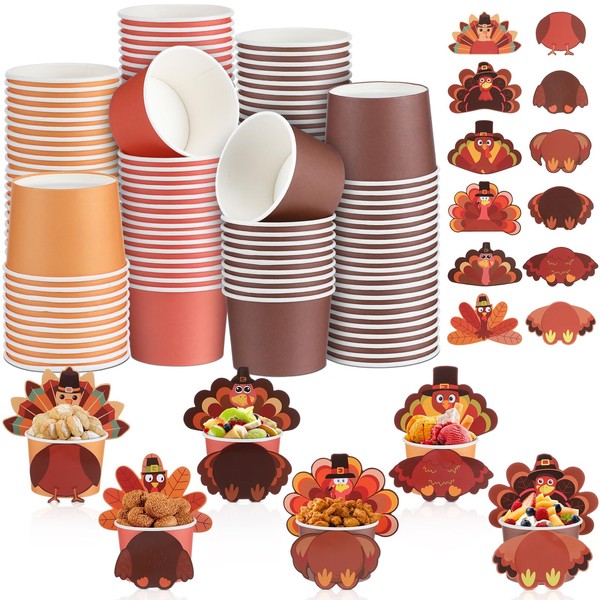 - Fall Paper Bowl Set: you will receive 60 Thanksgiving snack cups and 60 turkey-shaped cards; The Thanksgiving disposable snack bowls come in 3 colors, 20 of each; The turkey cardboard comes in 6 styles, 10 of each, and attaches to snack cup to create turkey shaped snack bowl