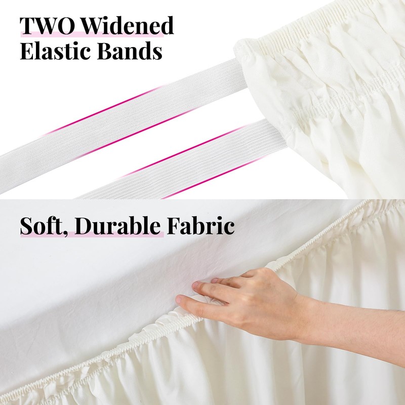 - 【Easy on/off】This elasticized bed skirt with TWO elastic bands is designed for your convenience. No need to lift heavy mattresses to make putting on and taking off a breeze