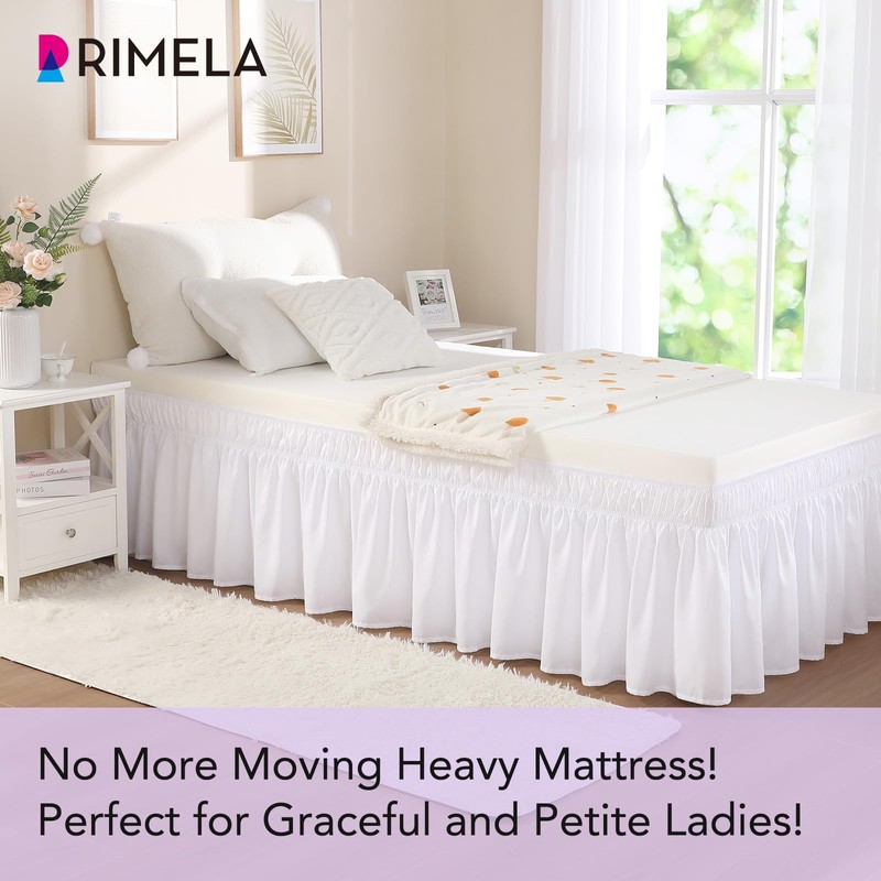 RIMELA White Bed Skirt Twin Size 15 Inch Drop, Elastic Bed Skirting for Bed Base and Frame, Bedding Dust Ruffle Easy to Install, Lightweight Wrap Around Adjustable Bedskirt