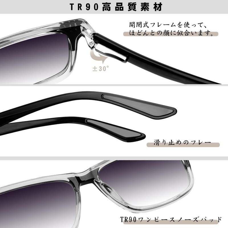 Rimerakea Men's Sunglasses, Black, Polarized TR90, UV Protection, Openable Frame, Unisex, Popular, For Driving, [C] Gradient Gray