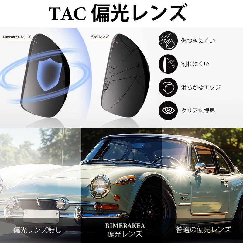 - [Comfortable Vision and Reduce Fatigue with TAC Polarized Lenses] Special TAC polarizing technology effectively eliminates reflected light that interferes with your vision. Visibility is clear even after long periods of use and reduces eye fatigue. High performance for driving, sports, and daily eye health. The design also makes everyday outing more fun and eye friendly