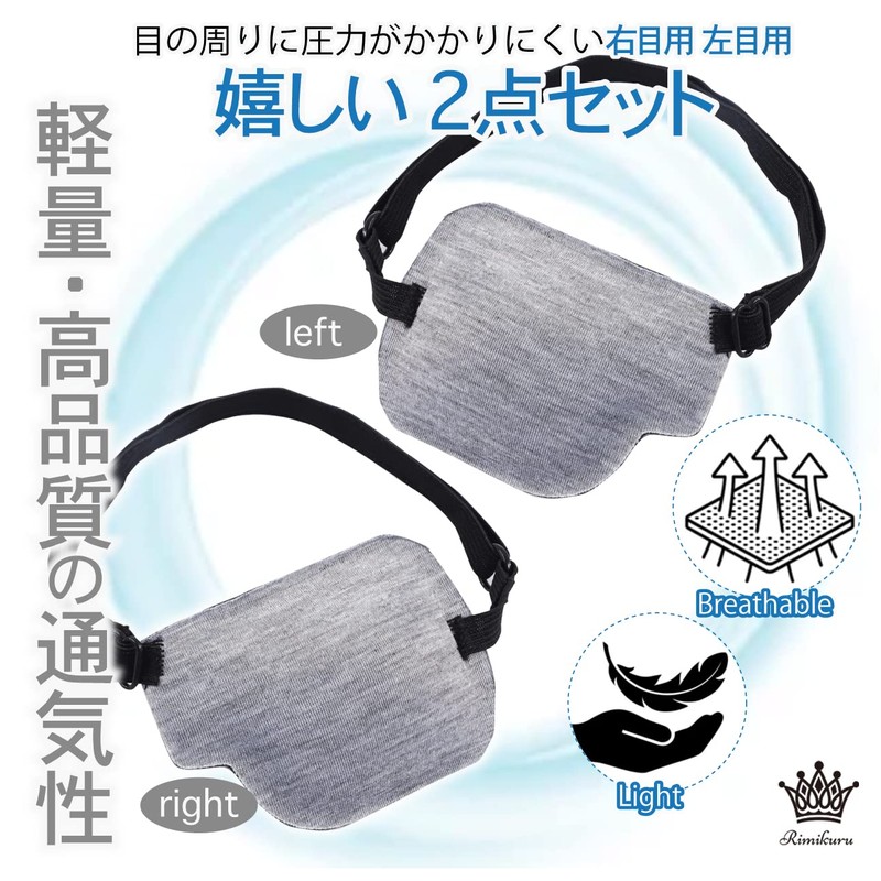 - 片目眼帯 グレー 右目用 左目用 嬉しい2点セット:目の周りに圧力がかかりにくい立体設計の右目と左目の2種類の片目用眼帯のセットになります。軽量かつ通気性にも優れ、長時間着用しても負担になりにくいです。