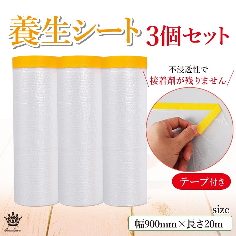 • 養生シート テープ付き 幅900mm×長さ20m お得な3巻セット:ペンキ塗装や車の塗装、室内壁養生などさまざまな用途でご使用いただける養生シート マスキングテープ付きのセットになります。長さを気にせず使用できる経済的にもお得な商品となっております。