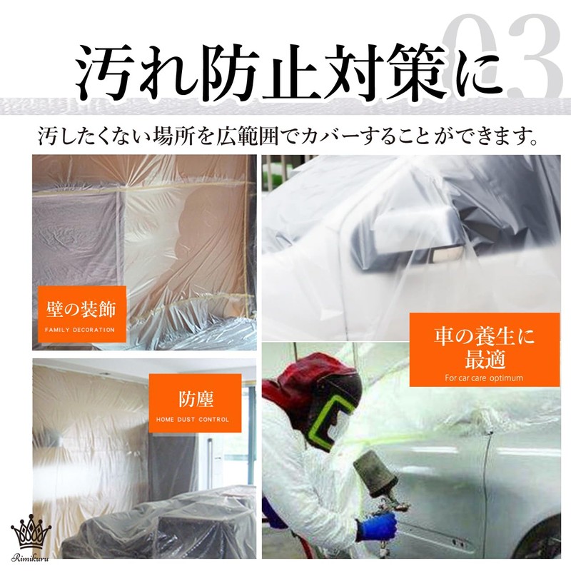 • 幅広い用途で使える:気になる場所に貼って、剥がせる防水仕様の養生シート マスキングテープ付きになっておりますので、室内や室外、自動車、濡らしたくない場所の養生、壁やベランダなどの塗装、エアコンの掃除、クリーニング清掃、建築現場、解体現場、自動車整備工場、床、屋根、模型などさまざまな用途でご使用いただくことができます。