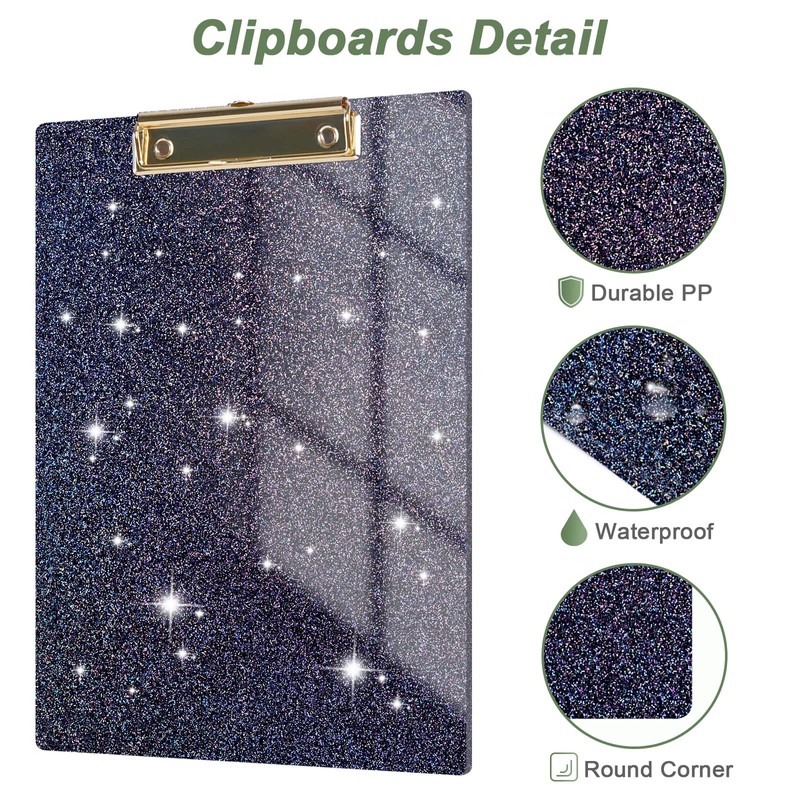 - Glitter Design:Bright color, classic and chic glitter elements make this colorful clipboard more attractive. With this unique clipboard, your daily works are far more fun and easy