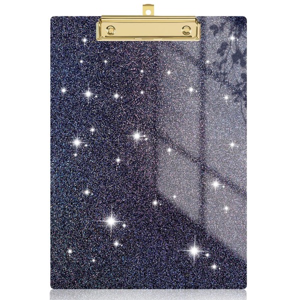 Rimilak Acrylic Glitter Clipboards, Sparkly Board with Low Profile Gold Clip, Designed for Classroom School and Office Use, A4 Letter Size 9 x 12.5 in, Black