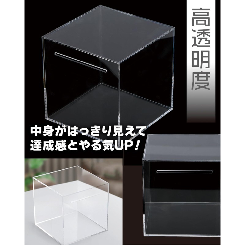 RIMINA Piggy Bank That Does Not Open, Transparent, Stylish, Bills, Stainless Steel, Large Capacity, Square, Clear