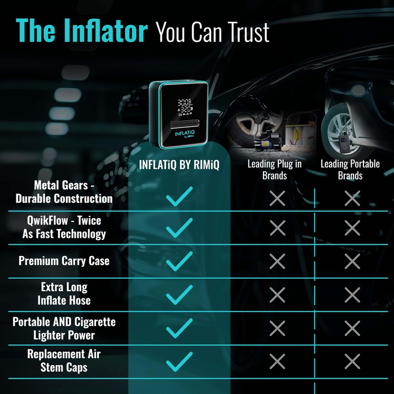 RIMiQ INFLATiQ by RIMiQ Tire Inflator - Powerful, Award-Winning QWIKFLOW Technology with 2 Portable Power Options Included - Strong Vehicle Air Pump for Trucks, Cars, Motorcycles, Bicycles, Balls and More