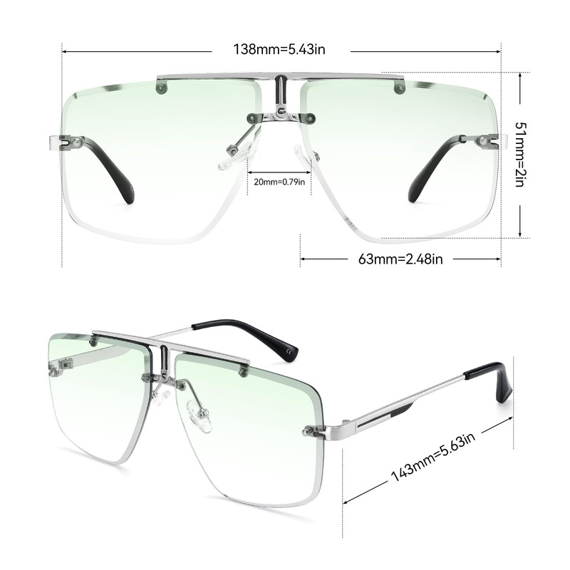 - ✅Trend-Forward Unisex Fashion Statement --Bold oversized square silhouette elevates streetwear, beach outfits, or casual looks.Frameless design + metallic finish adds subtle luxury to aviators-inspired glasses.