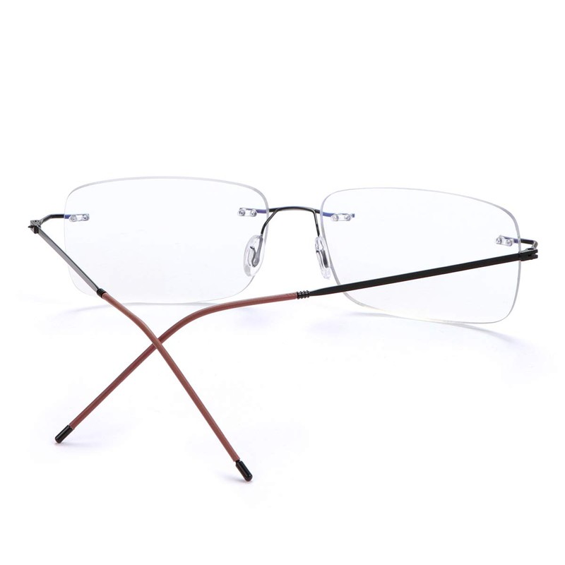 - High Quality Titanium Frame - The super light pure titanium frame: You can hardly feel them on your face.yet they are unbreakable!metal hinges and high elastic spring leg , adjustable nose pads make sure they fit perfectly and are comfortable.Classic style design suitable for various face types.this rimless titanium frame eyewear is very lightweight(only 15g),There are no pressure on the nose bridge.Importantly,the material is safe for the skin that you won't have allergies.