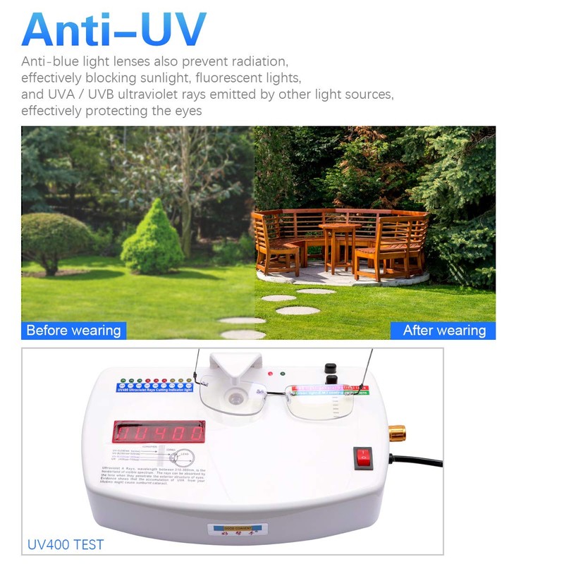 - Anti Glare Blue Light Blocking Computer Glasses - Eliminates glare with anti-reflective coatings. Reduce the reflected light on the lens surface, make the vision clear, reduce the specular reflected light, increase the light transmittance, solve the problem of taking pictures under strong light, and increase the aesthetics. Coated lenses protect against vision damage from UV rays, infrared and X-rays.