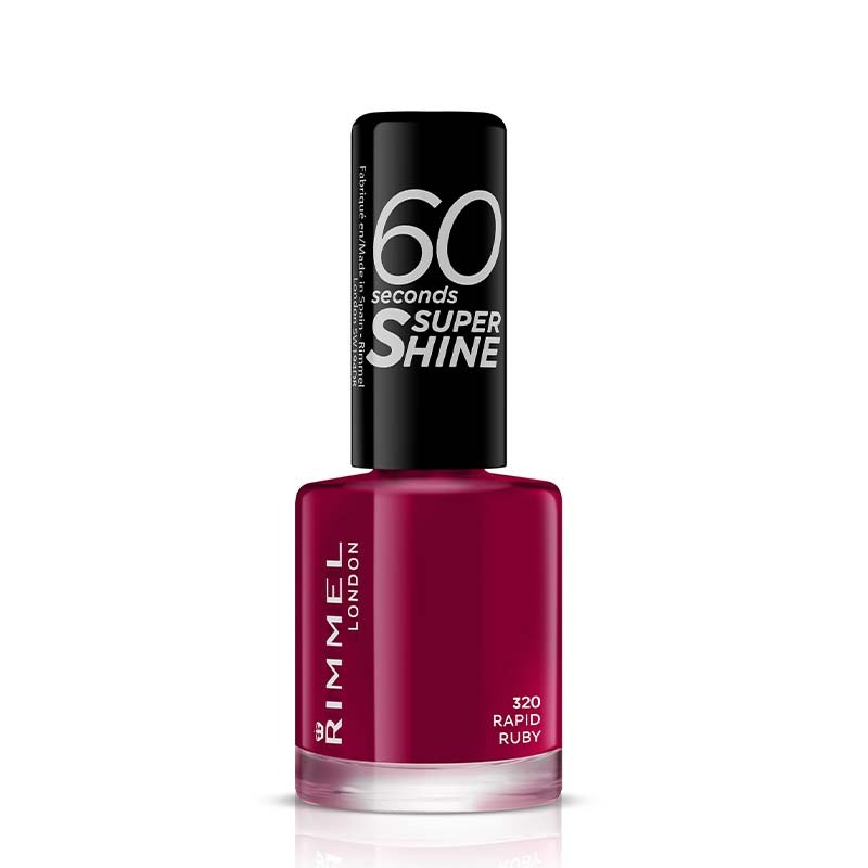 Rimmel London 60 Seconds Nail Polish provides high-shine, long-wearing colour in just one stroke. The patented 60 Seconds solution is dries super quick and it resists chipping and flaking for up to ten days. This innovative polish, which comes in a variety of colours, is the perfect every day, every occasion accessory.