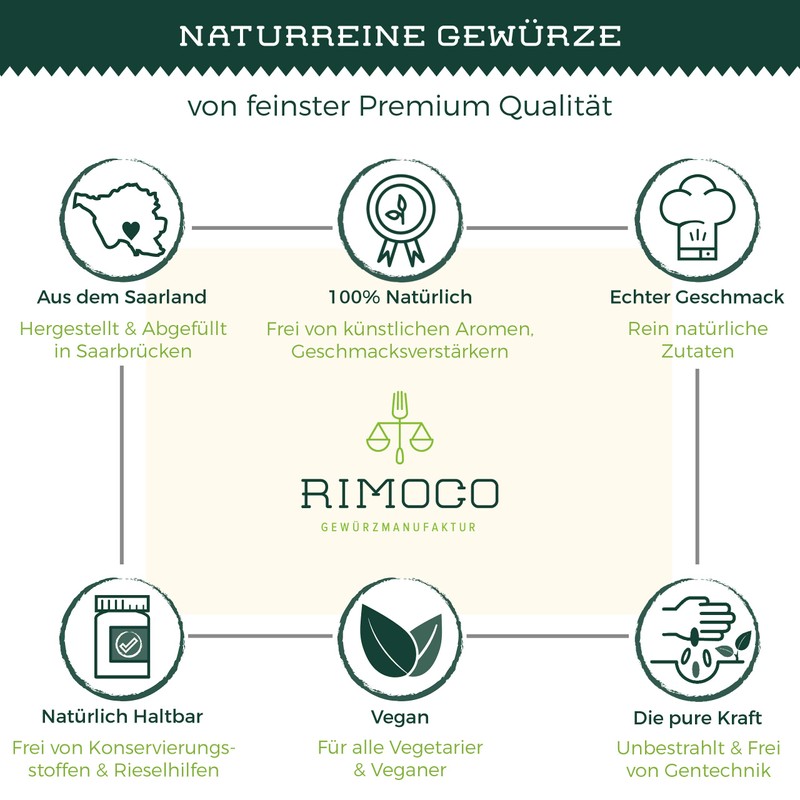 - 100% ORGANIC: Hergestellt und abgefüllt in Saarbrücken, frei von künstlichen Aromen, Farbstoffen, Konservierungsstoffen, Geschmacksverstärkern und Rieselhilfen, unbestrahlt und frei von Gentechnik - Kurzum: Echter Geschmack durch ausschließlich rein natürliche Zutaten