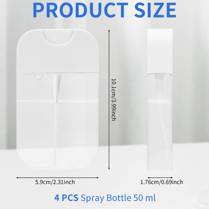 • Multi-functional Dispensing: This set of four 50ml capacity hand sanitizer spray bottle allows easy dispensing of various liquids, including perfume, mosquito repellent, disinfectant, toner, and more, bidding farewell to the hassle of large bottles and facilitating portability.