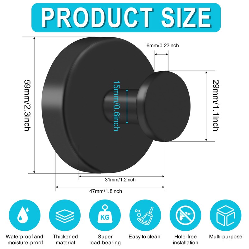 - 304 Stainless Steel Material, Waterproof and Rust-Resistant: Each bathroom hooks for towels is crafted from 304 stainless steel, offering excellent water resistance and rust prevention, ensuring a long-lasting lifespan even in the humid bathroom environment.