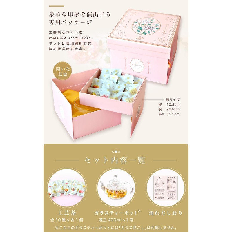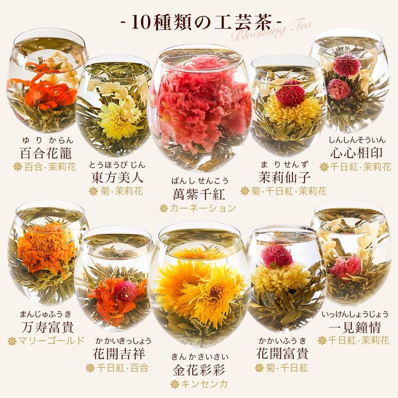 - Product Highlights: Just like magic. Comes with 10 types of tea with blooming flowers and a glass teapot so you can enjoy it as soon as you receive it. In addition, the sliding double tier packaging makes it a highly reputable present item with a luxurious packaging that will be appreciated as a gift or a return or celebration