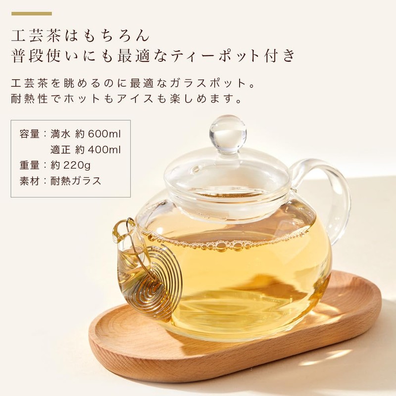 - Set Contents: 10 types of craft tea, 1 each, 1 heat-resistant glass teapot (23.6 fl oz (600 cc), and a bookmark for drinking tea