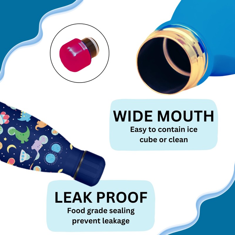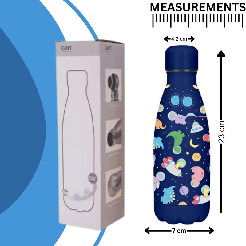RINCS Essentials Kids Metal Water Bottles–350ml Capacity-Stylish and Fun Designs -Keeps Drinks Refreshingly Cold for Up to 24 Hours, Perfect Back-to-School Accessories for Kids (Space dinosaurs)