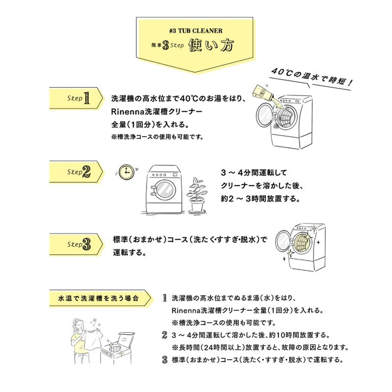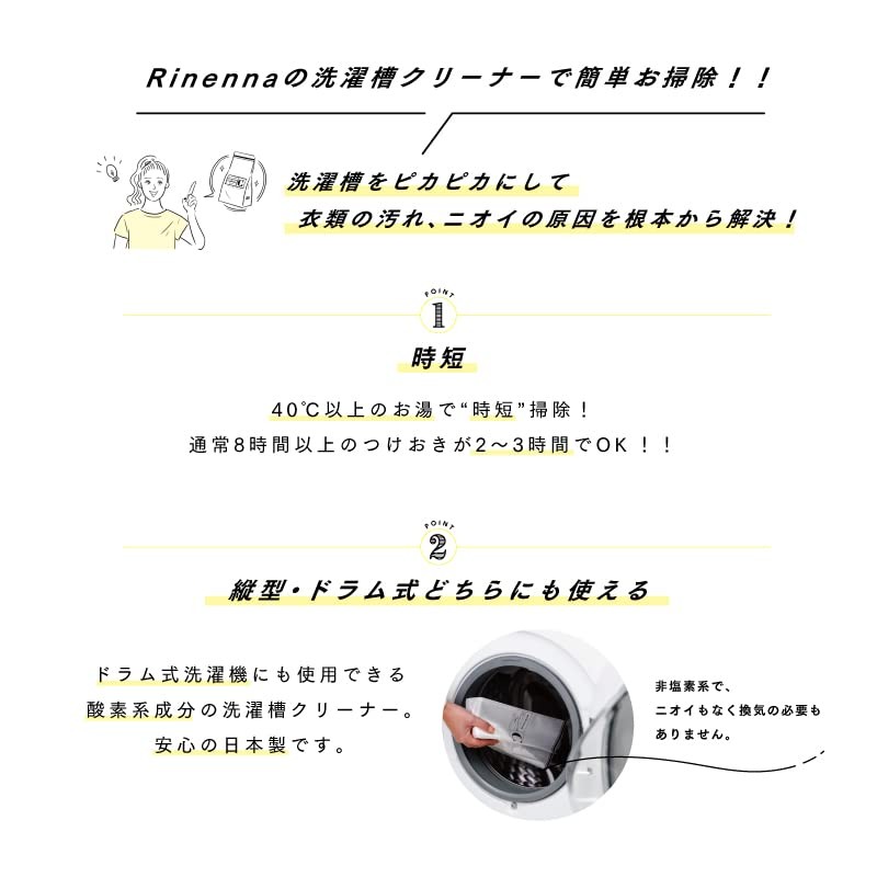 Rinenna Laundry Tank Cleaner, Rinenna #3 TUB Cleaner (Fully Automatic Washing Machine, Front-Load, Vertical, Two-Tank Washing Machine, Chlorine-free, Safe Oxygen Washing Tank Cleaner)