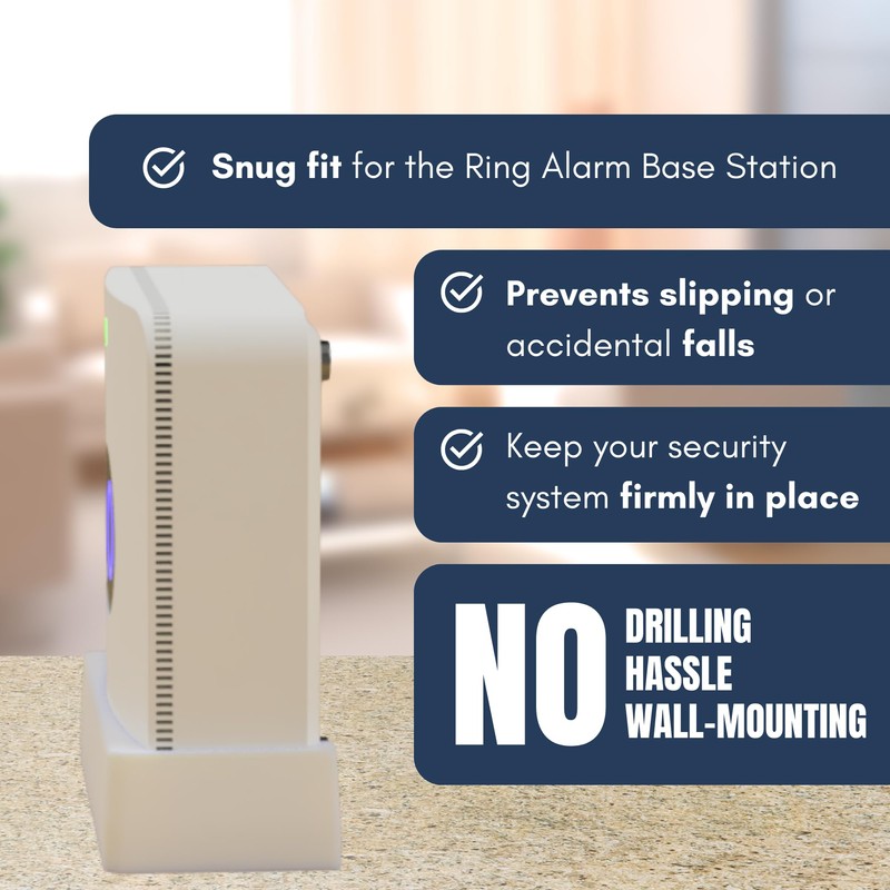 - No Wall Mounting Worries - Say goodbye to the complexities of wall installation. With this ring security alarm holder, there's no need for drilling, anchors, or mounting brackets. Simply place your Ring Alarm Base Station in the holder, and you're good to go!