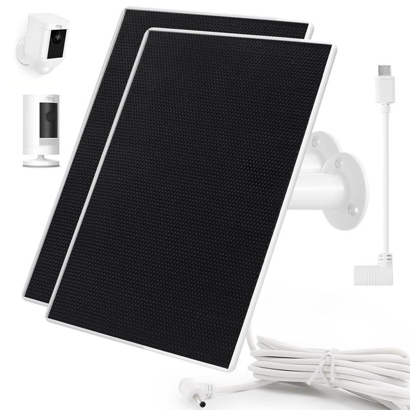 Ring Camera Solar Panel Charger, Compatible with Ri ng Stick Up Cam, Ri ng Stick Up Cam Pro, Ri ng Spotlight Cam Plus/Pro, TypeC and Ring Barrel DC Plug, 6W5V (2Pack)