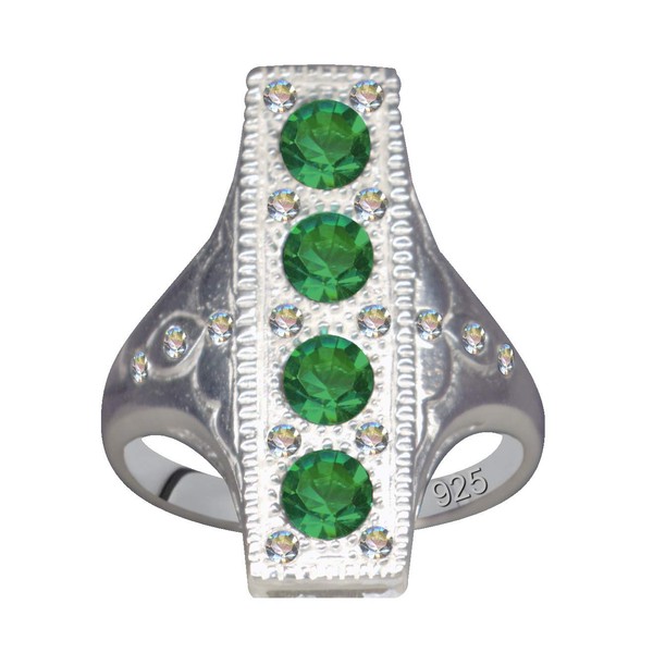 Ring Green Real Silver 925 Zirconia Crystals White Art Deco 55 Ring Size 17.5 mm Love Faith Hope Emotion Symbol Motif Style Object Extravagant New Good Beautiful Fashionable White Clear Transparent
