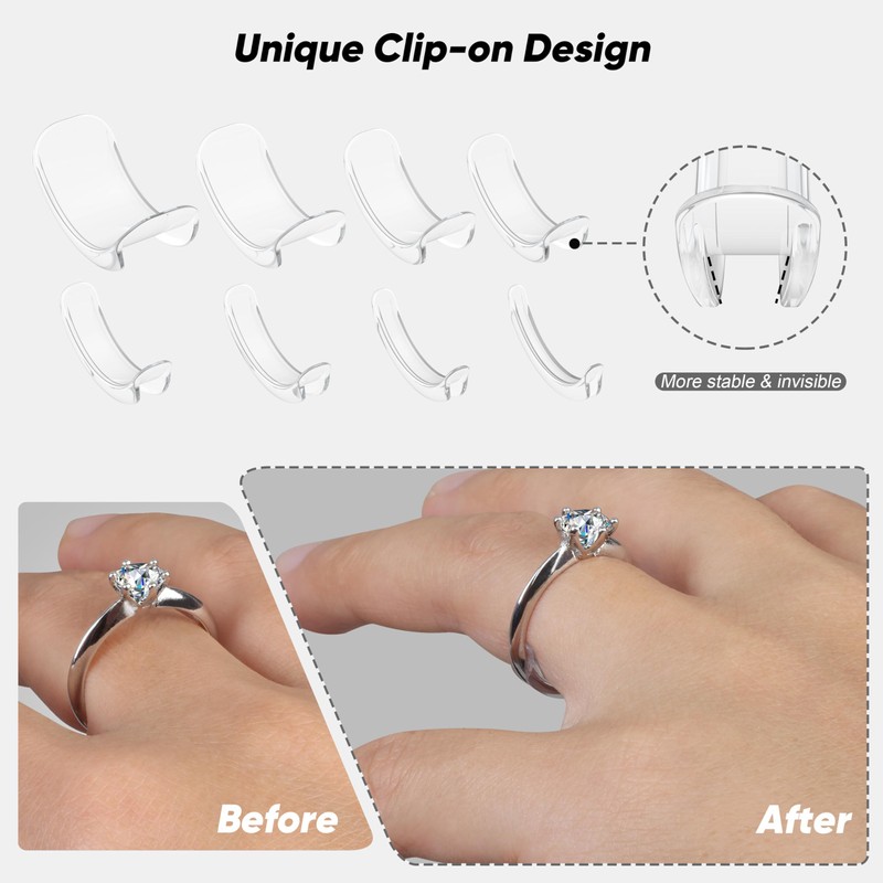 - 8 PCS/Set in assorted sizes, there is always one for your loose ring. The ring size adjuster is only for the rings that are 0.5-2 size bigger.