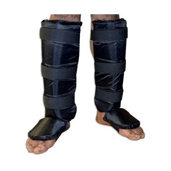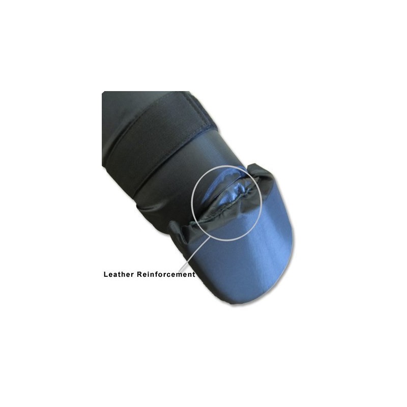 - Durable heavy duty nylon and leather piece reinforcement between shin and instep for maximum durability 3 elastic straps support with Velcro closures secures the guard to the feet and shins