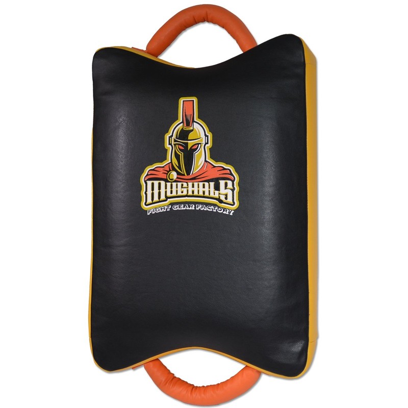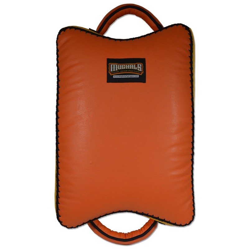 Improved design with no sharp edges or angles. Improved handle grip area for easy holding. Traditional Thai Suitcase style kick pad, Great product for leg and cut kicks, foot jabs, knees and even body punches. Shock absorbing multi- layered foam padding in durable synthetic, designed for heavy hitters, Flat Design with two handles. Measures: 21" tall x 14.5" wide x 6" thick Weighs 4.5 pounds. Sold as one.