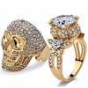 Ringcrown Couple Rings Matching Ring Skull Ring Bridal Sets AAA CZ Womens Wedding Ring Sets Gold Plated Man Wedding Bands, crystal Metal rhinestone stone, Cubic Zirconia,