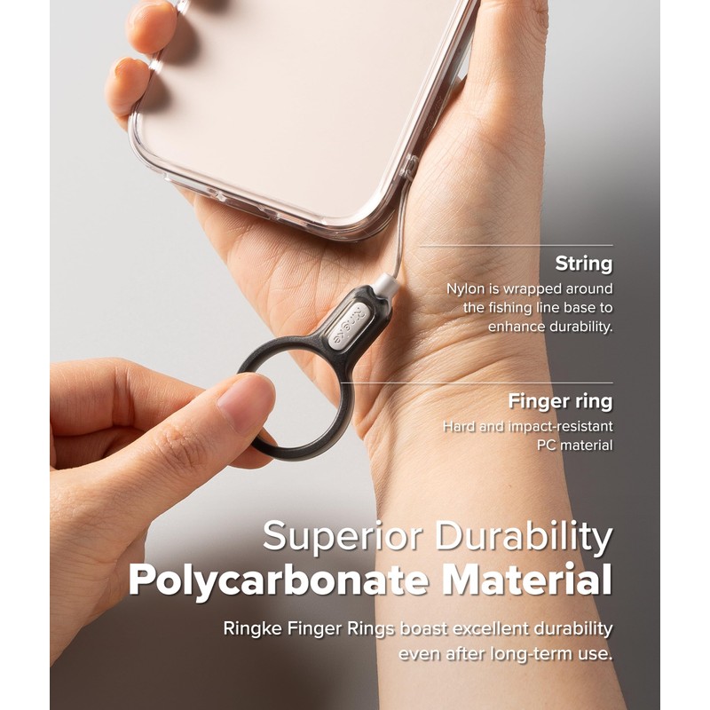 Ringke Buckle Finger Ring Designed for Camera Strap and Phone Strap, Durable Lightweight Universal Ring-Shaped Lanyard - Smoke Black