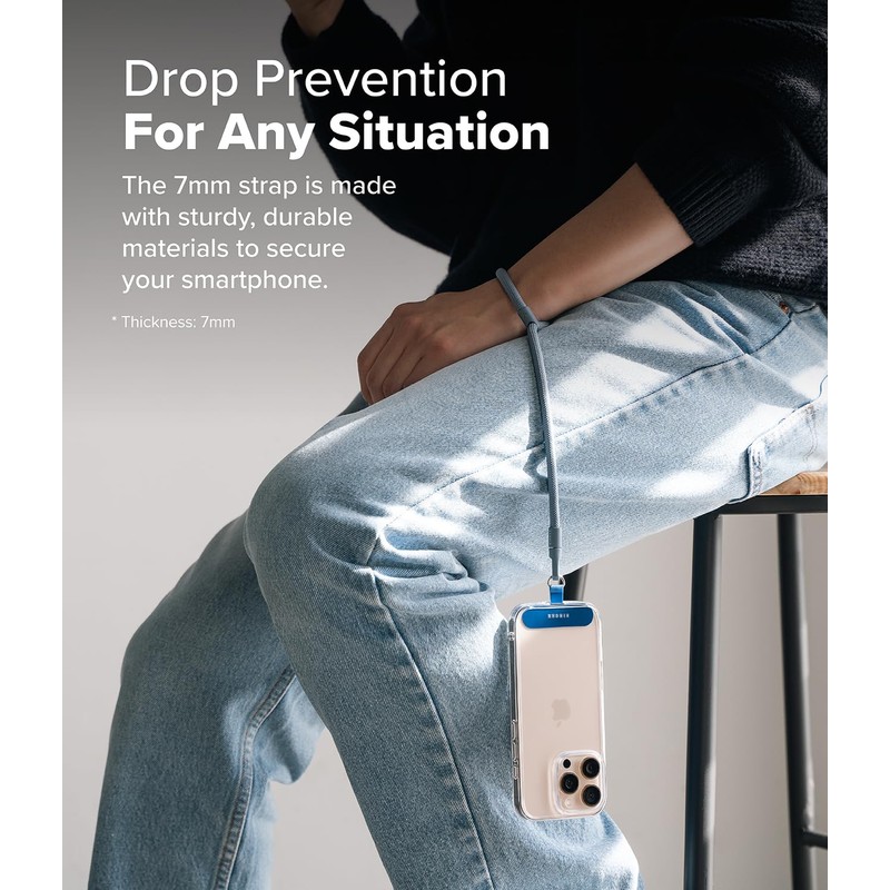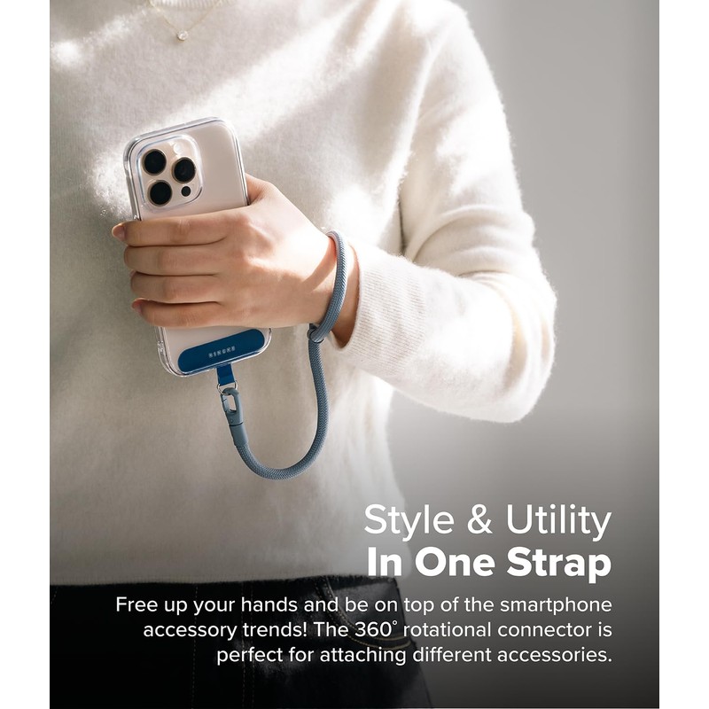 Ringke Holder Link Flow Adjustable Hand P-Type Strap with Patch, Universal Detachable Cell Phone Wrist Bracelet Lanyard for Most Smartphone Cases - Urban Blue