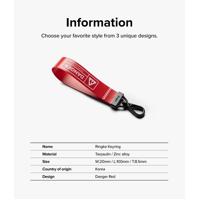 Ringke Key Ring Strap, made with powerful tarpaulin, is designed to last against usage and time through expert production and hand-picked quality materials. The lanyard strap is 8.5cm long x 2cm wide, for the perfect space-saving and user-friendly size that promotes accessibility without getting in the way or becoming cumbersome. The finger strap is attached to the keyring by two screws, preventing wear and tear for ensured durability. The metallic keyring swivels for 360-degree rotation, and the simplistic modern carabiner-style hook is easy to attach and remove by simply pushing the bottom joint. There are no limits to what this key ring can do. This timeless design is constructed for universal compatibility for any personal possessions, such as key fobs, wallets, AirPods, game consoles, USB flash drives, key chains, and more, providing extra security against drops or theft. Think outside of the box and attach it to the zipper handle on bags, totes, and jackets and make life easier as well. The bright, eye-catching colors and a fun design make it easy to locate your important personal items even at a glance! Never lose your AirPods, phone, and keys again! Compatible with any accessories and devices with keychains, hooks, or split ring access points. PLEASE READ BEFORE USE - Ringke Key Ring Lanyard may wrinkle or twist due to the material. Adjustment by hand may be required to smooth out the strap. - Spinning a device with the strap or excessive force may break the strap. - Do not use on items over 300g as may damage the product. - Depending on your lifestyle, abrasion may occur on the product. Please keep aware of the strap condition.