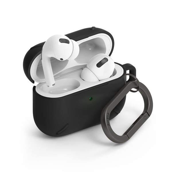 Ringke Layered Case para Funda AirPods Pro [Black] PC Duro (LED Frontal Visible) Cubierta Resistente a los Golpes para AirPods Pro 2019 Case con Mosquetón