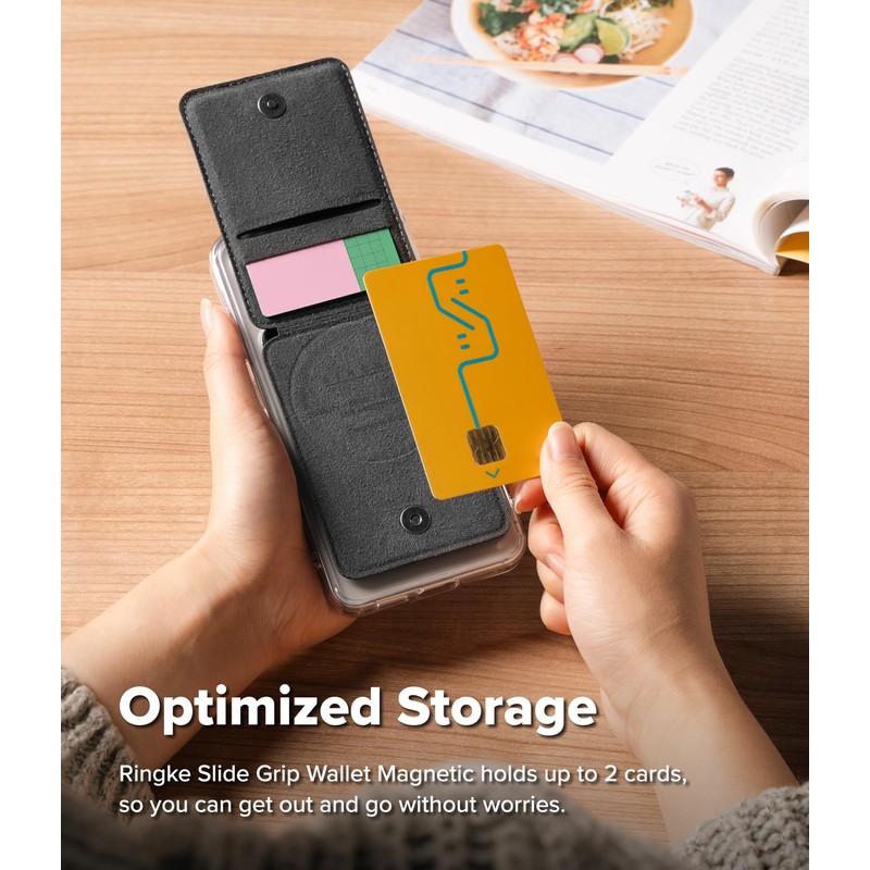 Ringke Slide Grip Wallet Magnetic [Funcionalidad Todo en Uno] Compatible con Cartera MagSafe, Tarjetero Magnético para Celular con Soporte Ajustable y Agarre para Teléfono - Black