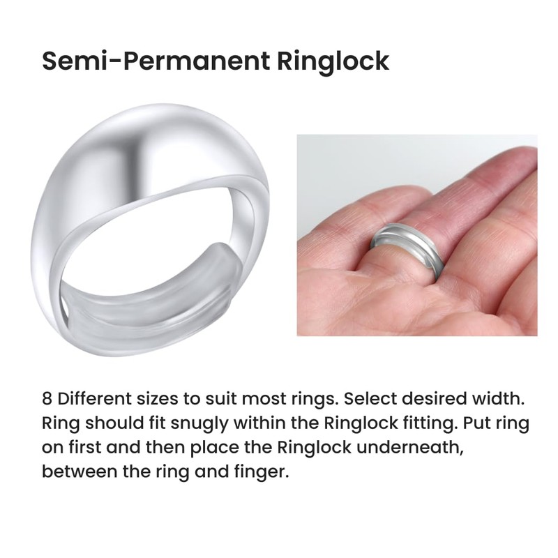 - Make Your Ring Fit - Ring too loose? Tighten the fitting from the first wear with our Ringlock ring adjuster! Now, you can wear your metal, platinum, gold, or silver ring anytime and anywhere without the fear of losing it.