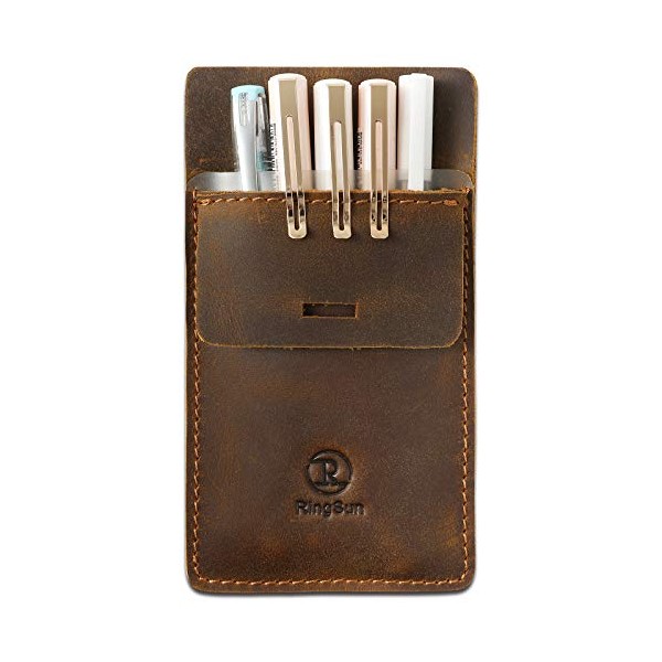 RingSun Pocket Protector, Leather Pen Pouch Holder Organizer, Full Grain Leather Pen Holder Pouch for Heavy Duty Shirts, Hold 6 Pens, Pocket Protectors for Pens and Pencils