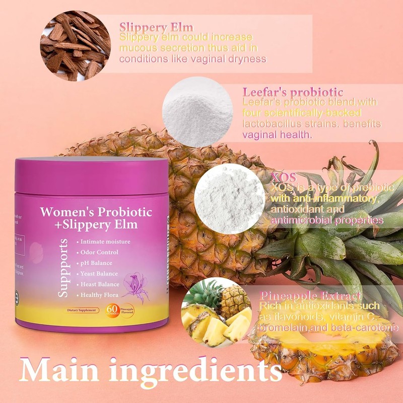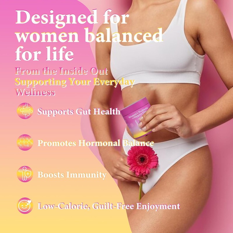 - Feminine Probiotics Gummies for WomenThese probiotic gummies are specially formulated for women, featuring a Lactobacillus blend, slippery elm, and prebiotics to help maintain a healthy microbiome, aid digestion, and support immune function.
