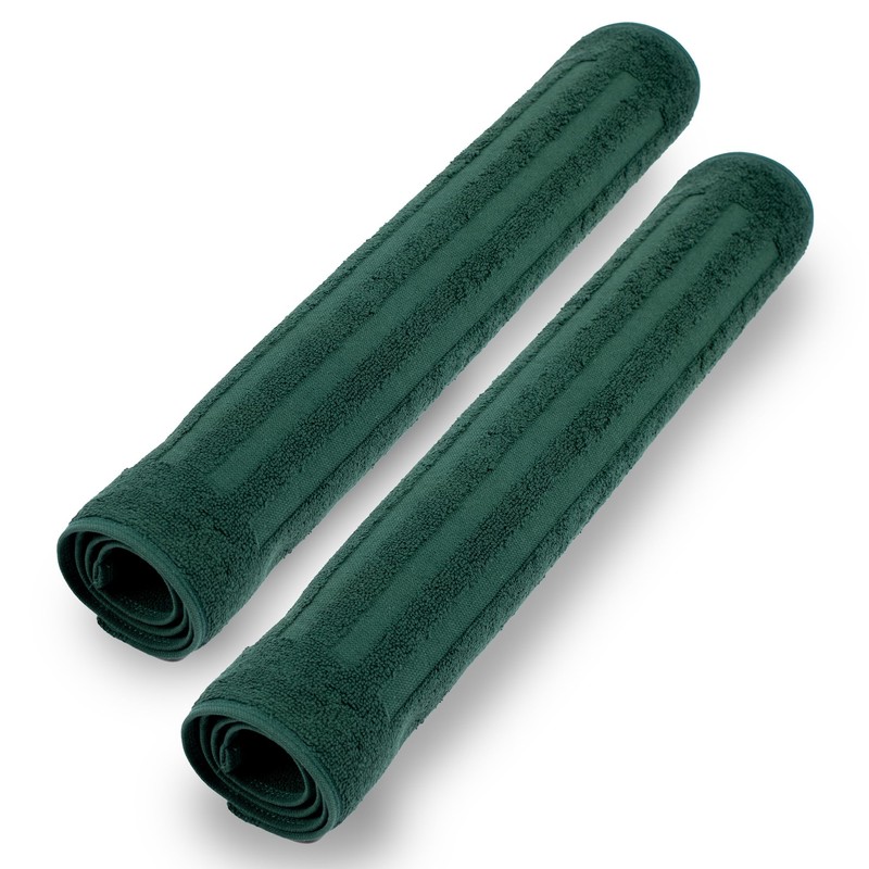 - Set of 2 premium shower mats: terry bath mat double pack with two woven borders, without rubber backing. Bath mat size: 50 x 70 cm, rectangular. Suitable as a bath mat for shower, bathtub, sink, toilet. Bathroom mat colour: forest green - dark green