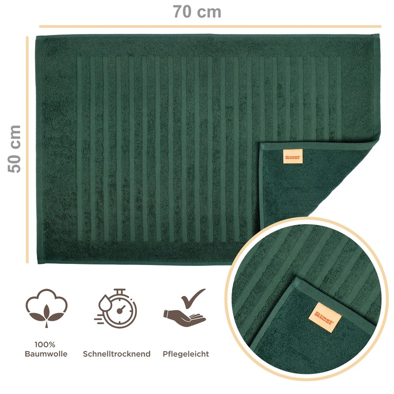 Rinsl Shower Mat, Bath Mat Set, 100% Cotton Terry Towelling, 700 g/m², Bath Mat, Quick Drying, Machine Washable, Forest Green (Dark Green, 50 x 70 cm, Pack of 2) (Dark Green, 50 x 70 cm)