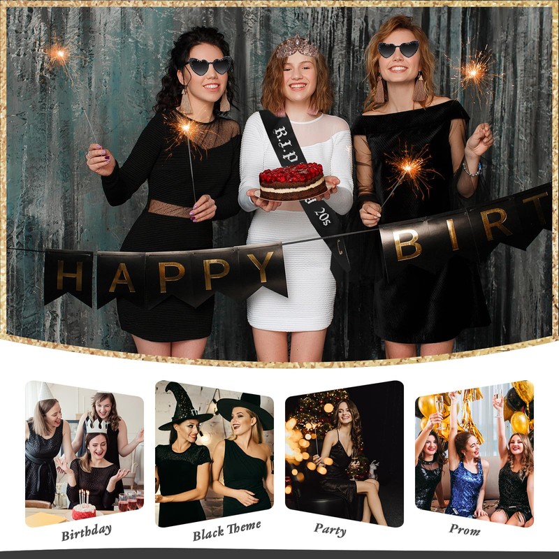 - ·Versatile Birthday Party Accessories for Women:Ideal for black-themed events,costume parties,Halloween,or cosplay, this rip to my 20s birthday sash and crown is not just for birthdays—it’s a versatile set of birthday party accessories for women.Capture memorable moments and express personality with this stunning sash,bronze gold crown,and glitter sunglasses combo.