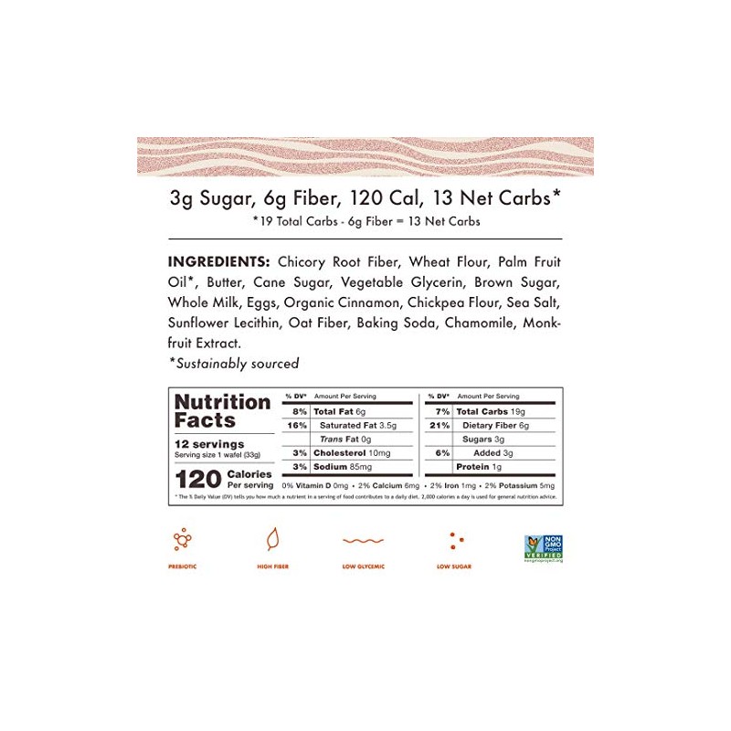 - Healthy Snack with Only 3g of Sugar: Contains 3g of Sugar, 0g Trans Fat, 120 calories, and 6g of Fiber in each 33g stroopwafel
